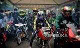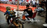 Peserta bersiap memacu sepeda motornya dalam ajang Street Race Polda Metro Jaya di Ancol, Jakarta, Ahad (16/1/2022). (FOTO : Republika/Thoudy Badai)