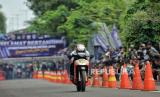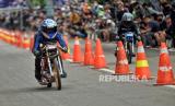 Peserta memacu sepeda motornya dalam ajang Street Race Polda Metro Jaya di Ancol, Jakarta, Ahad (16/1/2022). (FOTO : Republika/Thoudy Badai)