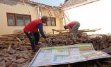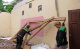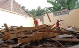 REPUBLIKA.CO.ID, TEMANGGUNG -- Warga bergotong royong menyingkirkan puing-puing atap gedung sekolah yang ambruk di MTs Nurul Huda desa Keblukan, Kaloran, Temanggung, Jawa Tengah, Minggu (16/1/2022).