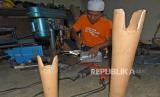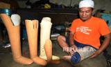 REPUBLIKA.CO.ID, PANDEGLANG -- Syahroni (43), difabel yang juga pengurus Komunitas Penyandang Disabilitas Indonesia (KPDI) Banten membuat kaki palsu di Kampung Pagadungan, Karangtanjung, Pandeglang, Banten, Ahad (16/1/2022).