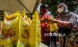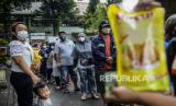 REPUBLIKA.CO.ID, JAKARTA -- Warga mengantre untuk membeli minyak goreng di depan Kantor Kecamatan Johar Baru, Jakarta, Senin (17/1/2022). Sebanyak 3.000 liter minyak goreng seharga Rp 14.000 disediakan untuk warga pada operasi pasar minyak goreng murah sebagai upaya menstabilkan harga yang melonjak di pasaran.
