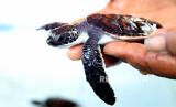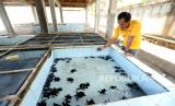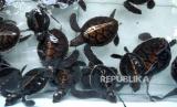 REPUBLIKA.CO.ID, BANYUWANGI -- Petugas mengecek tukik di tempat penetasan telur penyu semi alamiah Pantai Ngagelan, Taman Nasional Alas Purwo, Banyuwangi, Jawa Timur, Minggu (16/1/2022). Data penetasan telur penyu yang dikelola TN Alas Purwo menunjukan pada musim penyu mendarat untuk bertelur tahun 2021 terdapat sebanyak 1.158 sarang atau menurun dibandingkan musim sebelumnya sebanyak 1.308 sarang yang diperkirakan karena faktor siklus tahunan dan abrasi.