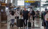 Sejumlah calon penumpang pesawat berjalan di Terminal 3 Bandara Internasional Soekarno-Hatta, Tangerang, Banten, Ahad (16/1/2022). Pemerintah memutuskan membuka pintu perjalanan internasional setelah sebelumnya melarang warga dari Afrika Selatan, Botswana, Norwegia, Prancis, Angola, Zambia, Zimbabwe, Malawi, Mozambique, Namibia, Eswatini, Lesotho, Inggris dan Denmark untuk masuk ke Indonesia. (FOTO : ANTARA/FAUZAN)