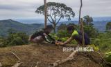 REPUBLIKA.CO.ID, MERATUS -- Pemandangan Puncak Halau-Halau gunung tertinggi di Pegunungan Meratus terlihat dari wisata puncak Tiranggang di Desa Hinas Kiri, Kabupaten Hulu Sungai Tengah, Kalimantan Selatan, Ahad (16/1/2022).
