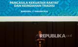 Presiden Joko Widodo menyampaikan Presidential Lecture (kuliah Umum) pada puncak Dies Natalies ke-67 Universitas Katolik Parahyangan (Unpar) di Auditorium Gedung Pusat Pembelajaran Arntz-Geise (PPAG) Unpar, Bandung, Jawa Barat, Senin (17/1/2022). Selain memberi kuliah umum yang mengangkat tema Pancasila Kekuatan Rakyat dan Keindahan Tradisi tersebut, Presiden Joko Widodo meresmikan gedung Pusat Pembelajaran Arntz-Geise (PPAG) kampus Unpar. (FOTO : Antara/Novrian Arbi)