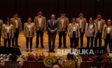 Presiden Joko Widodo (tengah) berfoto bersama dengan sejumlah mahasiswa usai menyampaikan Presidential Lecture (kuliah Umum) pada puncak Dies Natalies ke-67 Universitas Katolik Parahyangan (Unpar) di Auditorium Gedung Pusat Pembelajaran Arntz-Geise (PPAG) Unpar, Bandung, Jawa Barat, Senin (17/1/2022). Selain memberi kuliah umum yang mengangkat tema Pancasila Kekuatan Rakyat dan Keindahan Tradisi tersebut, Presiden Joko Widodo meresmikan gedung Pusat Pembelajaran Arntz-Geise (PPAG) kampus Unpar. (FOTO : Antara/Novrian Arbi)