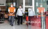 Tersangka mantan Camat Rawa Lumbu, Bekasi, Jawa Barat, Makhfud Saifudin (kiri) berjalan meninggalkan ruangan usai menjalani pemeriksaan di gedung KPK, Jakarta, Senin (17/1/2022). KPK memeriksa Makhfud Saifudin terkait dugaan kasus korupsi pengadaan barang dan jasa serta lelang jabatan di Pemerintahan Kota Bekasi dengan barang bukti uang sebesar Rp3 miliar dan buku tabungan dengan saldo Rp2 miliar. (FOTO : Antara/M Risyal Hidayat)