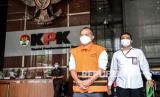REPUBLIKA.CO.ID, JAKARTA -- Tersangka mantan Camat Rawa Lumbu, Bekasi, Jawa Barat, Makhfud Saifudin memasuki mobil tahanan usai menjalani pemeriksaan di gedung KPK, Jakarta, Senin (17/1/2022). KPK memeriksa Makhfud Saifudin terkait dugaan kasus korupsi pengadaan barang dan jasa serta lelang jabatan di Pemerintahan Kota Bekasi dengan barang bukti uang sebesar Rp3 miliar dan buku tabungan dengan saldo Rp2 miliar. ANTARA FOTO/M Risyal