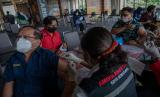 REPUBLIKA.CO.ID,SEMARANG -- Petugas kesehatan menyuntikkan vaksin COVID-19 penguat (booster) jenis AstraZeneca kepada seorang warga di sebuah pusat perbelanjaan di Kota Semarang, Jawa Tengah, Senin (17/1/2022).