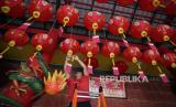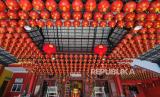 REPUBLIKA.CO.ID,TANGERANG SELATAN -- Pekerja memasang lampion di Vihara Kwan In Thang, Pondok Cabe, Tangerang Selatan, Banten, Senin (17/1/2022).