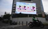 REPUBLIKA.CO.ID,JAKARTA -- Pengendara motor melintas di dekat layar digital yang menampilkan imbauan protokol kesehatan di Jakarta, Senin (17/1/2022).