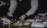 Petugas melakukan uji laboratorium barang bukti narkoba sebelum dimusnahkan di RSPAD Gatot Subroto, Jakarta, Selasa (18/1/2022). Bareskrim Polri memusnahkan 244 kilogram sabu, 13,8 kilogram ganja, 90 kilogram ekstasi dan 47.500 butir erimin/H-5 yang diperoleh dari hasil pengungkapan kasus bulan Desember 2021 sampai 2 Januari 2022. Republika/Putra M. Akbar (FOTO : Republika/Putra M. Akbar)