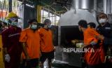 Sejumlah tersangka memasukan barang bukti narkoba ke dalam alat pembakaran untuk dimusnahkan di RSPAD Gatot Subroto, Jakarta, Selasa (18/1/2022). Bareskrim Polri memusnahkan 244 kilogram sabu, 13,8 kilogram ganja, 90 kilogram ekstasi dan 47.500 butir erimin/H-5 yang diperoleh dari hasil pengungkapan kasus bulan Desember 2021 sampai 2 Januari 2022. Republika/Putra M. Akbar (FOTO : Republika/Putra M. Akbar)