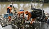 REPUBLIKA.CO.ID, BEKASI -- Seorang petugas dinas lingkungan hidup memilah sampah di Kali Bekasi dengan kapal sea cleaning conveyor di Bekasi, Jawa Barat, Kamis (20/1/2022). Pembersihan kali tersebut menggunakan tiga kapal bantuan dari Jerman untuk memilah dan mengangkut sampah dengan kapasitas 100 kilogram per hari.