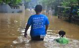 REPUBLIKA.CO.ID, KUDUS -- Warga duduk di teras rumah yang tergenang banjir di Desa Golantepus, Mejobo, Kudus, Jawa Tengah, Kamis (20/1/2022). Akibat intensitas hujan yang tinggi serta meluapnya Sungai Mrisen menyebabkan ratusan rumah dan jalan utama di desa itu terendam banjir.