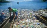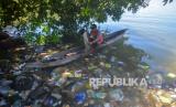 REPUBLIKA.CO.ID, TANAH DATAR -- Warga memindahkan biduk di antara sampah di tepian Danau Singkarak, Nagari Sumpu, Kabupaten Tanah Datar, Sumatera Barat, Kamis (20/1/2022). Tepian danau wisata tersebut dipenuhi sampah plastik sejak sepekan terakhir yang menyulitkan nelayan mencari ikan.