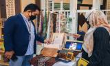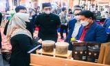 Komisaris Independen BSI, M. Arief Rosyid Hasan (kiri) mengunjungi showcase produk binaan Yayasan BSMU dalam ajang Grand Launching Talenta Wirausaha BSI di Jakarta, Rabu (19/1/2022). (FOTO : Dok. BSMU)