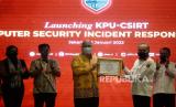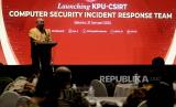 REPUBLIKA.CO.ID, JAKARTA -- Kepala Badan Siber dan Sandi Negara (BSSN) Hinsa Siburian memberikan pemaparan saat launching KPU Computer Security Incident Response Team (CSIRT) di Jakarta, Jumat (20/1/2022). KPU CSIRT tersebut dibuat untuk mengamankan sistem Pemilihan Umum (Pemilu) dari kejahatan siber.