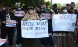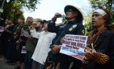 REPUBLIKA.CO.ID, BANDUNG -- Massa yang tergabung dalam Masyarakat Tatar Sunda dan Barisan Putra Sunda (Barada) menggelar aksi terkait pernyataan Arteria Dahlan yang telah menyinggung suku Sunda di depan Gedung Sate, Kota Bandung, Jumat (21/1/2022).