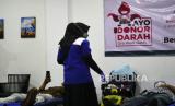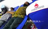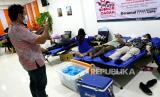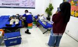 Pegawai mengikuti sedekah darah saat donor darah jemput bola di Genesis Coworking Space, Bantul, Yogyakarta, Jumat (21/1/2022). Sekitar 30 orang mengikuti donor darah bersama PMI Kota Yogyakarta. Beramal tidak harus dengan uang atau sedekah darah menjadi semangat kegiatan donor darah kali ini. (FOTO : Wihdan Hidayat / Republika)