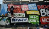 REPUBLIKA.CO.ID,JAKARTA -- Seniman menyelesaikan pembuatan mural di kawasan Palmerah, Jakarta, Ahad (23/1/2022).