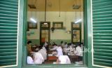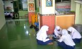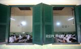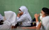 Siswa mengikuti pembelajaran tatap muka (PTM) di SMPN 2 Yogyakarta, Senin (24/1/2022). Mulai 24 Januari Pemkot Yogyakarta mulai menerapkan PTM 100 persen. Sebanyak 659 siswa SMPN 2 Yogyakarta mengikuti PTM 100 persen ini. Namun, setiap sesi pelajaran hanya 30 menit dan hanya 6 jam di sekolah. Kantin juga tidak dibuka sehingga siswa membawa bekal sendiri. (FOTO : Wihdan Hidayat / Republika)