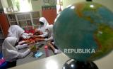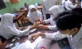 Siswa mengerjakan tugas kerajinan saat pembelajaran tatap muka (PTM) di SMPN 2 Yogyakarta, Senin (24/1/2022). Mulai 24 Januari Pemkot Yogyakarta mulai menerapkan PTM 100 persen. Sebanyak 659 siswa SMPN 2 Yogyakarta mengikuti PTM 100 persen ini. Namun, setiap sesi pelajaran hanya 30 menit dan hanya 6 jam di sekolah. Kantin juga tidak dibuka sehingga siswa membawa bekal sendiri. (FOTO : Wihdan Hidayat / Republika)
