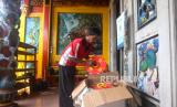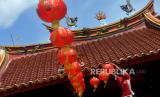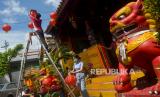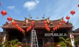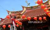 REPUBLIKA.CO.ID,JAKARTA -- Pekerja memasang lampion di halaman Klenteng Fuk Ling Miau, Gondomanan, Yogyakarta, Senin (24/1/2022).