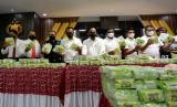 Personel Ditnarkoba Polda Aceh menggiring tersangka jaringan narkotika internasional seusai rilis kasus di Mapolda Aceh, Banda Aceh, Aceh, Selasa (25/1/2022). Ditresnarkoba Polda Aceh bersama Bea Cukai Aceh, Polres Aceh Timur dan Polres Lhokseumawe mengungkap sindikat peredaran narkoba jaringan internasional Indonesia-Malaysia dengan mengamankan enam orang tersangka beserta barang bukti 150 kilogram sabu, 145.000 butir pil ekstasi dan 20.000 butir pil Happy five (H5). (FOTO : ANTARA/Syifa Yulinnas)