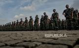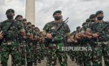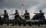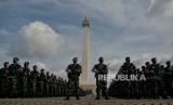 REPUBLIKA.CO.ID,JAKARTA -- Prajurit TNI Angkatan Darat (TNI AD) wilayah Jabotabek mengikuti apel di Lapangan Monumen Nasional (Monas), Jakarta, Selasa (25/1/2022).