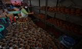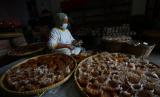 Pekerja menata kue keranjang di rumah industri kawasan Tukangan, Yogyakarta, Selasa (25/1/2022). Jelang Imlek 2022, industri rumahan kue keranjang tersebut kembali berproduksi setelah tahun lalu tidak produksi karena pandemi COVID-19 dan menjual kue dengan harga Rp45 ribu per kotak. (FOTO : ANTARA/Andreas Fitri Atmoko)