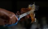 Pekerja merapikan kue keranjang di rumah industri kawasan Tukangan, Yogyakarta, Selasa (25/1/2022). Jelang Imlek 2022, industri rumahan kue keranjang tersebut kembali berproduksi setelah tahun lalu tidak produksi karena pandemi COVID-19 dan menjual kue dengan harga Rp45 ribu per kotak. (FOTO : ANTARA/Andreas Fitri Atmoko)