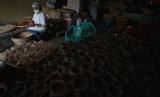 Pekerja merapikan bungkus plastik kue keranjang di rumah industri kawasan Tukangan, Yogyakarta, Selasa (25/1/2022). Jelang Imlek 2022, industri rumahan kue keranjang tersebut kembali berproduksi setelah tahun lalu tidak produksi karena pandemi COVID-19 dan menjual kue dengan harga Rp45 ribu per kotak. (FOTO : ANTARA/Andreas Fitri Atmoko)