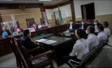 Ketua Majelis Hakim Aji Suryo (kiri) memeriksa dokumen saat sidang perdana kasus kebakaran Lapas Kelas IA Tangerang di Pengadilan Negeri Tangerang, Banten, Selasa (25/1/2022). Sidang perdana kasus kebakaran Lapas Kelas IA Tangerang yang menewaskan 49 narapidana tersebut beragendakan pembacaan dakwaan dari Jaksa Penuntut Umum (JPU). (FOTO : Antara/Fauzan)