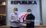 REPUBLIKA.CO.ID, JAKARTA -- Ketua Umum Forum Zakat (Foz) Bambang Suherman memberikan cindramata kepada Pemimpin Redaksi Republika Irfan Junaidi saat berkunjung ke kantor Republika, Jakarta, Selasa (25/1/2022).
