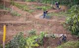 Sejumlah warga bersepeda di area Lembah Tangga 101 usai diresmikan di Cisurupan, Kecamatan Cibiru, Kota Bandung, Rabu (26/1/2022). Pemerintah Kota Bandung meresmikan Lembah Tangga 101 yang berfungsi sebagai kawasan wisata dan olahraga serta menjadi tempat resapan air yang diharapkan mampu meminimalisir banjir yang kerap terjadi di Kota Bandung. Foto: Republika/Abdan Syakura (FOTO : REPUBLIKA/ABDAN SYAKURA)