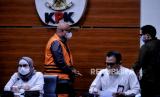 REPUBLIKA.CO.ID, JAKARTA -- Tersangka mantan Bupati Kabupaten Buru Selatan, Maluku periode 2011-2016 dan periode 2016-2021, Tagop Sudarsono Soulisa saat dihadirkan dalam konferensi pers pengumuman dan penahanan tersangka di Gedung KPK Merah Putih, Jakarta, Rabu (26/1/2022).