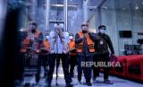 Tersangka mantan Bupati Kabupaten Buru Selatan, Maluku periode 2011-2016 dan periode 2016-2021, Tagop Sudarsono Soulisa berjalan meninggalkan gedung Merah Putih KPK usai dihadirkan dalam konferensi pers pengumuman dan penahanan tersangka di Jakarta, Rabu (26/1/2022). KPK resmi menetapkan tiga tersangka dan melakukan penahanan terhadap dua tersangka yakni mantan Bupati Kabupaten Buru Selatan Tagop Sudarsono Soulisa dan Johny Rynhard Kasman terkait dugaan tindak pidana korupsi penerimaan hadiah atau janji, gratifikasi dan TPPU terkait pengadaan barang dan jasa di Kabupaten Buru Selatan, Maluku Tahun 2011-2016. Republika/Thoudy Badai (FOTO : Republika/Thoudy Badai)
