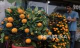REPUBLIKA.CO.ID, JAKARTA -- Pedagang menata tanaman jeruk chusa hias di Pasar Bunga Rawa Belong, Jakarta, Rabu (26/1/2022). Tanaman jeruk yang dijual seharga Rp850 ribu hingga Rp1,8 juta per pot.