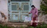 REPUBLIKA.CO.ID, LASEM -- Seniman pantomim Rembang, Sutejo melakukan aksi teatrikal merespon proyek revitalisasi Lasem di kawasan Pecinan Karangturi, Kecamatan Lasem, Kabupaten Rembang, Jawa Tengah, Rabu (26/1/2022).
