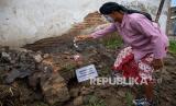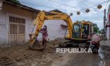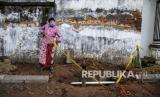Seniman pantomim Rembang, Sutejo menaburkan bunga ke struktur saluran air kuno yang dibongkar dalam aksi teatrikal respon terhadap proyek revitalisasi Lasem di kawasan Pecinan Karangturi, Kecamatan Lasem, Kabupaten Rembang, Jawa Tengah, Rabu (26/1/2022). Aksi yang diinisiasi Yayasan Lasem Heritage Bersama warga tersebut sebagai bentuk kritik dan harapan agar pihak terkait berhati-hati dalam proyek penataan Kecamatan Lasem agar sejumlah objek diduga cagar budaya terhindar dari kerusakan, sejalan dengan konsep pelestarian Lasem yang tengah berposes menuju ditetapkan menjadi Kawasan Cagar Budaya Nasional. (FOTO : Antara/Aji Styawan)