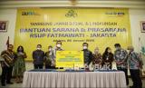 REPUBLIKA.CO.ID, JAKARTA -- Direktur Utama Bank BTN Haru Koesmahargyo didampingi Direktur Distribution and Retail Funding Bank BTN Jasmin (kanan) memberikan bantuan tanggung jawab sosial dan lingkungan (TJSL) secara simbolis kepada Direktur Utama Rumah Sakit Fatmawati Andi Saguni di Jakarta, Rabu (26/1).