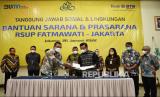 Direktur Utama Bank BTN Haru Koesmahargyo didampingi Direktur Distribution and Retail Funding Bank BTN Jasmin (kanan) memberikan bantuan tanggung jawab sosial dan lingkungan (TJSL) secara simbolis kepada Direktur Utama Rumah Sakit Fatmawati Andi Saguni di Jakarta, Rabu (26/1). Bank BTN menyalurkan TJSL kepada Rumah Sakit Fatmawati berupa Bantuan Sarana dan Prasarana, diharapkan dengan bantuan tersebut bisa mewujudkan keinginan Rumah Sakit Fatmawati untuk menjadi Rumah Sakit Nomor Satu di Indonesia. (FOTO : Dok BTN )