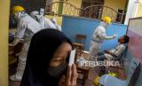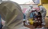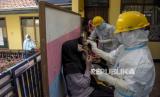 Petugas kesehatan mencatat hasil tes usap antigen pelajar di MI Cikapayang, Jalan Gagak, Cibeunying Kaler, Kota Bandung, Kamis (27/1/2022). Pemerintah Kota Bandung melalui Dinas Pendidikan Kota Bandung menyatakan, hingga Rabu (26/1/2022) telah melakukan tes usap antigen secara acak bagi pelajar di 27 sekolah dengan sampel 1.016 pelajar dan hasilnya nol kasus positif. Foto: Republika/Abdan Syakura (FOTO : REPUBLIKA/ABDAN SYAKURA)