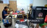 Arifin (35) mengerjakan pesanan tas kargo atau tas kurir di Tas Motor Jogja, Kotagede, Yogyakarta, Kamis (27/1/2022). Masa pandemi Covid-19 menjadi rezeki Tas Motor Jogja dengan inovasi pembuatan tas kurir. Tas kargo yang dibuat berupa tas gendong atau tas samping motor dengan ukuran bervariasi. Harga yang ditawarkan mulai Rp 150 ribu hingga Rp 500 ribu tergantung bahan dan modelnya. Pembeli tas kurir ini tidak hanya dari Yogyakarta, namun sudah menjangkau hampir seluruh Indonesia melalui daring. (FOTO : Wihdan Hidayat / Republika)