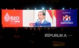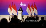 Ketua Penyelenggara B20 Shinta Kamdani memberikan sambutan dalam acara pertemuan pendahuluan atau B20 Inception Meeting,di Jakarta, Kamis (27/1/2022). Inception Meeting tersebut dihadiri oleh delegasi anggota G20 dan berlangsung 27 hingga 28 Januari 2022. (FOTO : Prayogi/Republika.)