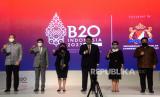 REPUBLIKA.CO.ID, JAKARTA -- Menteri Perdagangan Muhammad Lutfi, Menkominfo Johnny G Plate, Ketua Penyelenggara B20 Shinta Kamdani, Menteri Koordinator Bidang Perekonomian Airlangga Hartarto, Menteri Luar Negeri Retno Marsudi dan Menteri BUMN Erick Thohir berfoto dalam acara pertemuan pendahuluan atau B20 Inception Meeting,di Jakarta, Kamis (27/1/2022). Inception Meeting tersebut dihadiri oleh delegasi anggota G20 dan berlangsung 27 hingga 28 Januari 2022.