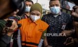 REPUBLIKA.CO.ID, JAKARTA -- Bendahara Umum Dewan Perwakilan Cabang (DPC) Partai Demokrat Balikpapan Nur Afifah Balqis (tengah) berjalan menuju mobil tahanan KPK usai menjalani pemeriksaan di Gedung KPK, Jakarta, Kamis (27/1/2022).
