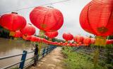 REPUBLIKA.CO.ID, SOLO -- Warga memancing ikan di pinggir Sungai Bengawan Solo yang dihiasi lampion menyambut Tahun Baru Imlek 2022 di Taman Sunan Jogo Kali, Pucang Sawit, Solo, Jawa Tengah, Kamis (27/1/2022). Hiasan lampion di tepi Sungai Bengawan Solo tersebut selain untuk menyambut Tahun Baru Imlek 2022 juga sebagai upaya mengenalkan wisata bantaran sungai dan mengajak masyarakat menjaga kelestarian sungai.