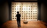 Pengunjung mengamati karya seni saat pameran bertajuk Para Sekutu yang Tidak Bisa Berkata Tidak di Galeri Nasional Indonesia, Jakarta, Jumat (28/1/2022). Pameran tersebut merupakan pilihan sejumlah koleksi seni dari Galeri Nasional Indonesia, Hamburger Bahnhof Museum fur Gegenwart Berlin, MAIIAM Contemporary Art Museum, Singapore Art Museum, Museum Seni Rupa dan Keramik, UP Museum Seni, dan beberapa koleksi pribadi, serta arsip-arsip bersejarah yang digelar dari tanggal 28 Januari sampai 27 Februari 2022 mendatang. Republika/Thoudy Badai (FOTO : Republika/Thoudy Badai)